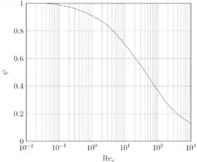 Considering the limiting particle free-stream Reynolds numbers, as then and therefore . Thus as expected there correction factor is unity in the Stokesian drag regime. Wessel & Righi [4] evaluated for from the empirical correlation for drag on a sphere from Schiller & Naumann.[5]