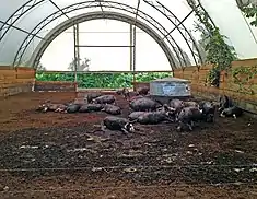 In 2008, Stone Barns opened its slaughterhouse to slaughter its livestock for plating at Blue Hill. Using their own slaughterhouse also eliminated the long and expensive drives to the closest one.[3]