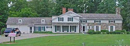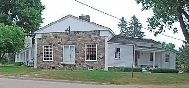 One of the important families in Stony Creek were the Van Hoosens, who arrived in the 1830s, with then-six-year old Joshua Van Hoosen. In 1851, Joshua purchased part of the farm, then wet to California to make his fortune during the gold rush. He returned in 1853, purchased the remaining interest in the farm, and married Sarah Taylor, Lumuel Taylor's daughter. By 1880, Joshua Van Hoosen owned nearly 300 acres of land in the vicinity. Joshua's granddaughter, Sarah Van Hoosen Jones, was born in 1881; Joshua died three years later and the family farm was eventually passed on to Sarah. She continued farming the area, and in 1921 received a Ph.D. in animal genetics, which led her to raise herds of prize dairy cattle.[2] Jones donated the farm to Michigan State University upon her death in 1972. The University donated the Van Hoosen Farmhouse and three acres to Avon Township, and in 1989, the City of Rochester Hills acquired the Van Hoosen Farm buildings and 13 surrounding acres. It is now a museum operated by the city.[3]