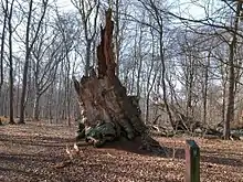 All that remains of the ancient oak is a piece of the trunk. In 1974 the trunk broke just above the lowest branch at a height of four meters. Because the lowest branch survived the tree managed to live on until 1981, when it was unfortunately killed by a hurricane. It is estimated that the tree was 800 years old.[1]