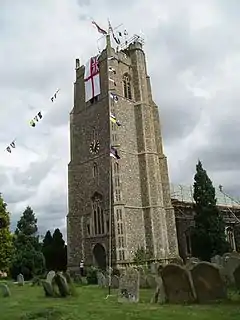 A post-medieval source states that the prominent medieval philosopher Robert Grosseteste, also Bishop of Lincoln, was born in Stradbroke in about 1175, but there is no medieval evidence to confirm this. Its parish church of All Saints, with a 15th-century tower and a raised stair turret, dominates the village as a landmark.[4]