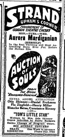 The Strand was built in 1918 as a movie and vaudeville house. It opened on the evening of November 11, 1918, billed as Dorchester's million dollar movie palace, with a double feature—Queen of the Sea, starring Annette Kellermann, and Out of a Clear Sky, starring Marguerite Clark, with extra added attraction Miss Emilie Earle, the songstress de luxe.[2] it closed in 1974 due to disrepair, only to be reopened again in 1979 after the city of Boston made extensive renovations. The theater was designed by Funk and Wilcox in Boston and built by McGahey and O'Connor. The theater boasted the first theater organ in New England which reportedly cost $75,000. It hosted Chaminade Opera Group in 1990 under the direction of Florence Louise Pettitt.