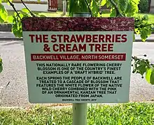 The Strawberries and Cream Tree was planted on public land which is now owned by North Somerset Council, on Rodney Road in the village of Backwell.[2] It is not known who originally planted and grafted the tree,[1] but it is believed to have been planted in the late 1950s.[2][3][4]