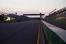 A street circuit is a motorsport racing circuit composed of temporarily closed-off public roads of a city, town or village, used in motor races. Facilities such as the paddock, pit boxes, fences and grandstands are usually placed temporarily and removed soon after the race is over but in modern times the pits, race control and main grandstands are sometimes permanently constructed in the area. Since the track surface is originally planned for normal speeds, race drivers often find street circuits bumpy and lacking grip. Run-off areas may be non-existent, which makes driving mistakes more expensive than in purpose-built circuits with wider run-off areas. Racing on a street circuit is also called "legal street racing".