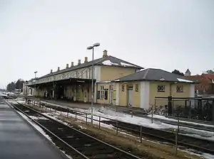 Struer station is an important railway junction where the Langå-Struer Line, the Esbjerg-Struer Line and the Thy Line from Struer to Thisted meet. The station was opened in 1865 with the opening of the Skive-Struer section of the Langå-Struer Line. It offers direct InterCity services to Copenhagen as well as regional train services to Aarhus, Fredericia, Skjern and Thisted. The train services are operated by Arriva and DSB.