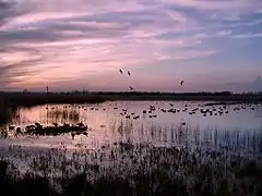 - Hundreds of ducks, including teals, gadwalls and shovelers gather to feed in the reedbed pools.
