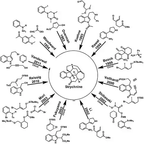 - Bonjoch J, Solé D (September 2000). "Synthesis of Strychnine". Chemical Reviews. 100 (9): 3455–3482. doi:10.1021/cr9902547. PMID 11777429.