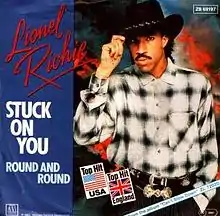 "Stuck on You" is a song written by and originally recorded by Lionel Richie. It was the fourth single released from his second studio album Can't Slow Down released on May 1, 1984, by Motown, and achieved chart success, particularly in the U.S. and the UK, where it peaked at number three and number 12, respectively. "Stuck on You" reached number one on the Adult Contemporary chart, Richie's seventh chart topper.[1] The song differs from Richie's other compositions, as it displays a country pop influence rather than R&B.[2] The song marks Lionel Richie's country music debut, and indeed, "Stuck on You" peaked at number 24 on the country chart.[3] As such, the single's cover photo shows Richie wearing a cowboy hat.
