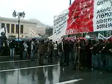 Student activism in Greece has a long and intense history. Student activism in the 1960s was one of the reasons cited to justify the imposition of the dictatorship in 1967. Following the imposition of the dictatorship, the Athens Polytechnic uprising in 1973 triggered a series of events that led to the abrupt end of the regime's attempted "liberalisation" process under Spiros Markezinis, and, after that, to the eventual collapse of the Greek junta during Metapolitefsi and the return of democracy in Greece. Kostas Georgakis was a Greek student of geology, who, in the early hours of 19 September 1970, set himself ablaze in Matteotti square in Genoa as a protest against the dictatorial regime of Georgios Papadopoulos. His suicide greatly embarrassed the junta, and caused a sensation in Greece and abroad as it was the first tangible manifestation of the depth of resistance against the junta. The junta delayed the arrival of his remains to Corfu for four months citing security reasons and fearing demonstrations while presenting bureaucratic obstacles through the Greek consulate and the junta government.[46]
