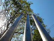 The stumps are three vertical posts which support two bails.[1] The stumps and bails are usually made of wood, most commonly ash,[2] and together form a wicket at each end of the pitch.