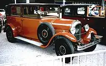 After the war the manufacturer announced an ambitious 1408 cc V8 engined car.[5] The car sat on a 2,450 mm (96.5 in) wheelbase, and appeared at the 15th Paris Motor Show in October 1919 with a 2-seat "Torpedo" type body and a 17,500 franc manufacturer's price.[5] Little more was heard of this car, however,[5] and during the early 1920s the manufacturer focused on 4-cylinder models. At the Motor Show in October 1924 they were exhibiting their 4-cylinder "Type D" with 1843 cc and priced in bare chassis form at 14,100 francs.[6] "Torpedo" bodied and "Landaulet" versions were also listed, respectively at 20,000 francs and 25,000 francs.[6]