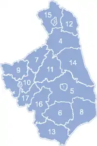 Podlaskie Voivodeship is divided into 17 counties (powiats): 3 city counties and 14 land counties. These are further divided into 118 gminas.