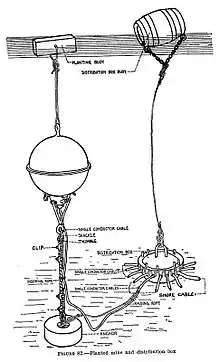 In 1943 the buoyant mines were replaced with ground mines, which rested on the seabed. This was due to the deployment of minefields in World War II, which resulted in deep-draft ships fouling the mine cables while passing through deactivated minefields.[5]
