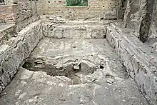 The bathhouse was renovated after the earthquake of 62 AD, in which a piscina calida, a heated swimming pool, was added to the north of the complex.[10][11][12]