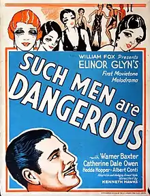 Such Men Are Dangerous (a.k.a. The Mask of Love) is a 1930 American pre-Code drama film directed by Kenneth Hawks and written by Ernest Vajda.[1] The film is based on a novella by Elinor Glyn who based her story on the 1928 real-life disappearance of Belgian Banker Alfred Loewenstein who vanished on a flight over the English Channel.[2] Such Men Are Dangerous stars Warner Baxter, Catherine Dale Owen, Hedda Hopper, Claud Allister, Albert Conti and Bela Lugosi.[3] Shortly after a midair collision killed 10 crew members in the "worst air accident in film history", Such Men Are Dangerous was released on March 9, 1930, by Fox Film Corporation.[4]