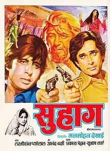 Suhaag is a 1979 Indian Hindi-language action drama film directed by Manmohan Desai. A huge box office success, the film became the highest-grossing film of 1979.[1]