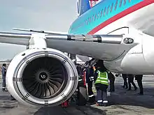 The design meets CIS AP-25, US FAR-25 and EU JAR-25 aviation rules, and conforms to ICAO Chapter 4 and FAR 36 Section 4 noise standards from 2006.[54] The PowerJet SaM146 turbofans provides 13,500 to 17,500 lbf (60 to 78 kN) of thrust for 70-120 seat aircraft.[55]