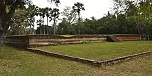 Noen Prasat or Palace Hill (Thai: เนินปราสาท) is the remains of the royal palace of the Kingdom of Sukhothai. The Noen Prasat was discovered in 1833 by Mongkut, who had made a pilgrimage to the north of Siam as a monk. The palace was built on a square base with the dimensions of 200 x 200 meters. Nearby were two small ponds where the archaeologists found the remains of terracotta pipes which probably been used to supply water from a city lake to the ponds. In the southwest, there are the remains of a 1.5-meter-high (4.9 ft) brick platform on which they found ashes and bones inside, so It can be assumed that it was the royal cremation place. The Ramkhamhaeng stele was discovered here by Mongkut. He also discovered the so-called "Manangasila Throne" (Thai: พระแท่นมนังคศิลาอาสน์), an approximately 1m x 2, 50m x 15 cm large slab of gray stone, which is decorated with lotus petals depiction. The Ramkhamhaeng Stele says that Ramkhamhaeng erected this stone throne in the sugar palm grove. Mongkut took these finds to Bangkok.