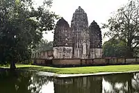 Originally, Sukhothai was a Khmer empire's outpost named Sukhodaya.[2][3][4] During the reign of Khmer Empire, the Khmers built some monuments there, several of them survived in Sukhothai Historical Park such as the Ta Pha Daeng shrine, Wat Phra Phai Luang, and Wat Sisawai.[5] About some 50 kilometer north of Sukhothai is another Khmer military outpost of Si Satchanalai or Sri Sajanalaya.[6][7]