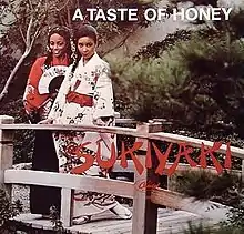 A Taste of Honey vocalist Janice-Marie Johnson would recall how at age 9 she had heard Kyu Sakamoto's "Sukiyaki" on the radio in the summer of 1963 and said: "Mom! Buy me this record!", as despite not understanding the lyrics she was deeply moved by the song. Constantly playing the single, Johnson phonetically learned its lyrics and taught them to her sister, with the pair participating in neighborhood talent shows singing "Sukiyaki" while performing their approximation of an Oriental dance number.[21] Years later, after A Taste of Honey had scored their 1978 #1 hit "Boogie Oogie Oogie", Johnson had heard the Linda Ronstadt hit remake of Smokey Robinson and the Miracles' "Ooo Baby Baby" on her car radio causing Johnson to realize that remaking a 1960s hit could be a good career move for A Taste of Honey, with Johnson's obvious choice for the remake being her beloved "Sukiyaki".[22][23] Johnson contacted the song's Japanese lyricist Rokusuke Ei who provided her with a literal translation of what he had written:[24] as this translation did not yield complete sentences in English, Johnson endeavored to write a new set of lyrics she felt would capture the spirit of the song.[22] To Johnson, it seemed the song's original lyrics had 3 possible interpretations: as the mindset of a man facing execution; as someone trying to be optimistic despite life's trials; or as the story of an ended love affair: Johnson decided; "me being the hopeless romantic that I am, I decided to write about a love gone bad."[25]