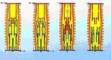 This technique, known as "self-blast" has now been used extensively since 1980 for the development of many types of interrupting chambers. The increased understanding of arc interruption obtained by digital simulations and validation through breaking tests, contribute to a higher reliability of these self-blast circuit breakers. In addition the reduction in operating energy, allowed by the self-blast technique, leads to longer service life.