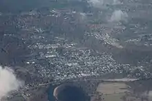 In an effort to resolve development issues and a city budget shortfall, a Monroe city councilmember unsuccessfully suggested merging the two cities during the 2007 financial crisis.[35] The Sultan city government instead began outsourcing its policing and library services to county agencies while undergoing other reforms.[36][37] The city government has endorsed schemes to lure new industries, including offering tracts of land and opening new parks and a shooting range in a bid to appeal to outdoor recreation companies.[38][39]
