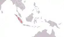 The Sumatran tiger is a population of Panthera tigris sondaica in the Indonesian island of Sumatra.[2][3] This population was listed as Critically Endangered on the IUCN Red List in 2008, as it was estimated at 441 to 679 individuals, with no subpopulation larger than 50 individuals and a declining trend.[1]