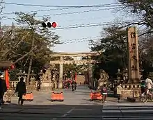 Sumiyoshi-ku (住吉区) is one of 24 wards of Osaka, Japan. It is located on the southern part of the Uemachi Plateau, in the southernmost part of Osaka City, and is separated from Sakai City's Sakai-ku and Kita-ku by the Yamato River. There are six rail lines, and three main thoroughfares - Abiko-Suji (which run north-south through the centre of the ward), Abeno-Suji (which continues north through the area of Tennoji) and Nagai Koen-Dori, which runs east-west and connects the area with the port to the west. The northern part of Sumiyoshi-ku is a residential area which is a continuation of the southern part of Abeno-ku. The Tezukayama 1-Chome neighbourhood in Abeno-ku, and Tezukayama-naka and Tezukayama-nishi neighbourhoods in Sumiyoshi-ku are upper-class residential areas. South of this, around the Sumiyoshi Grand Shrine, are the Sumiyoshi and Kamisumiyoshi neighbourhoods, home to many long established local families. Surrounding these are the middle-class residential neighbourhoods of Shimizugaoka, Suminoe, Oriono, Dairyo, Minamisumiyoshi, Yamanouchi, and Nagai, which lies at the eastern end of the ward. Sumiyoshi-ku is home to about 157,000 residents, and has a population density of 16,800 people per square kilometer.