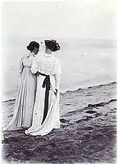 The painting itself was inspired by a walk along the beach by Anna Ancher and Marie Krøyer after a dinner party at the Krøyers' home in the summer of 1892 when the guests had gone down to the shore to enjoy the pleasant evening.[7] In 1990, an exhibition by the Hirschsprung Collection revealed that the painting had in fact been based on photographs of the two ladies taken by Krøyer. Until then, no one had imagined it was related to the artist's interest in photography.[8]