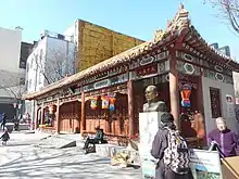 When he returned to China in 1883 at age 17, Sun met up with his childhood friend Lu Haodong again at Beijidian (北極殿), a temple in Cuiheng Village.[1] They saw many villagers worshipping the Beiji (literally North Pole) Emperor-God in the temple, and were dissatisfied with their ancient healing methods.[1] They broke the statue, incurring the wrath of fellow villagers, and escaped to Hong Kong.[1][20][21] While in Hong Kong in 1883 he studied at the Diocesan Boys' School, and from 1884 to 1886 he was at The Government Central School.[22]