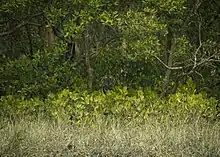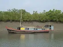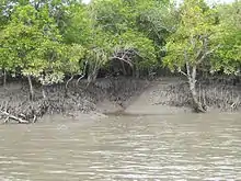 The Sunderban mudflats[7] are found at the estuary and on the deltaic islands where low velocity of river and tidal current occurs. The flats are exposed in low tides and submerged in high tides, thus being changed morphologically even in one tidal cycle. The interior parts of the mudflats are the right environment for mangroves.