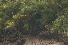 Cyclone Amphan made landfall near Sagar Island of South 24 Parganas district on the 20th of May 2020. Lives have been lost and damage has been meted out to infrastructure.[16] The cyclone damaged "almost the entire nylon fencing" in the forest which prevents the tigers from entering the forest-fringe villages, thereby keeping a check on the man-animal conflict. Besides the fencing, the cyclone also damaged "dozens of forest camp offices, tents, watch towers and staff quarters".[17] The West Bengal Forest Department were initially apprehensive about tigers being harmed or killed by the cyclone but the post cyclone patrolling revealed no dead bodies of the tigers and instead offered glimpses of the animals roaming around in the forest.[18]