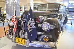 The Sunshine Special was the official state car used by Franklin D. Roosevelt, the 32nd President of the United States. It is said to have been the "First Presidential car to acquire its own personality".[1] It was a 1939 twelve-cylinder engine, four-door convertible originally built by Lincoln and was specifically modified for the President by a speciality coach builder, Brunn & Company, Inc., in Buffalo, New York, at a cost of $4,950 (the original cost of the car was $8,348.74).[2] Initially called "Old 99," in reference to a number on its first license plate, it was later nicknamed the "Sunshine Special" (the exact origin of the nickname is unknown, but it was most likely first used in a photo caption)[3] as a reference to its retractable roof, and was famously enjoyed by the president, who had its roof brought down during public gatherings. At other times, the car was used as traditional presidential transportation. This was in spite of a previous assassination attempt on Roosevelt as he was riding in a Buick convertible, prior to the creation of the Sunshine Special.