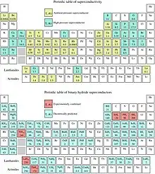 10) becomes a superconductor at 250 K under a pressure of 170 gigapascals.[62][61]