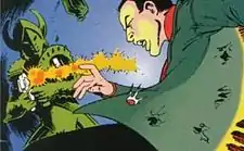 The Cape-Killer's various firearms in early comics shot tranquilizer darts[5] though later they have been shown to use genetic paralyzer laser weapons.[14]