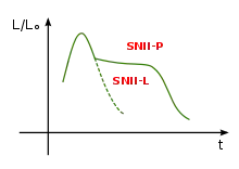 | Type II-L Displays a "linear" decrease in its light curve (linear in magnitude versus time)[47] | ||||||||