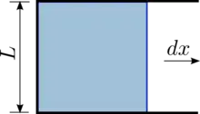Surface tension γ of a liquid is the force per unit length. In the illustration on the right, the rectangular frame, composed of three unmovable sides (black) that form a "U" shape, and a fourth movable side (blue) that can slide to the right. Surface tension will pull the blue bar to the left; the force F required to hold the movable side is proportional to the length L of the immobile side. Thus the ratio F/L depends only on the intrinsic properties of the liquid (composition, temperature, etc.), not on its geometry. For example, if the frame had a more complicated shape, the ratio F/L, with L the length of the movable side and F the force required to stop it from sliding, is found to be the same for all shapes. We therefore define the surface tension as
