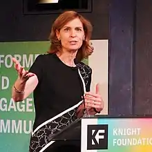 ![]() Susan Crawford keynotes a Knight News Challenge event in New York City, November 2017. | |