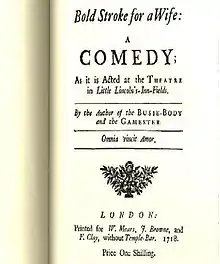 - A Bold Stroke for a Wife: A Comedy, Susanna Centlivre