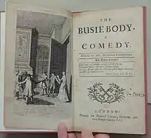 Centlivre was a highly successful professional playwright. A similarly renowned playwright, Colley Cibber, was accused of borrowing parts of Love at a Venture to write his own play, The Double Gallant. However, in an apparent reconciliation he accepted a part in Centlivre's next play, The Platonick Lady (November 1706).[23] After having grown weary with anonymous authorship, Centlivre used the preface to The Platonick Lady to express her distaste for society's outlook on the female writer.[4] Following her third marriage, Centlivre took some time off. This decision turned out to be a good one; her time away resulted in her most successful comedy, The Busy Body (May 1709).[24] The play ran for thirteen nights, a remarkable run for the time, and was revived the following season.[4]