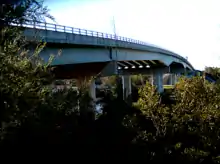 The 980-foot-long (300 m), 80-foot-wide (24 m) deck structure, consists of prestressed concrete girders which carry four traffic lanes across the ICW at 65’ above Mean High Water.[2] The bridge has for the most part been accident free with the notable exception of a construction related incident in December 2008 when a concrete girder placed on a pier dislodged before it was property secured, fell to the ground and killed one worker.[3] The National Bridge Inventory for 2017 listed the bridge condition as good.[4]