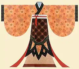 Swallow-tailed Hems and Flying Ribbons clothing, or tsa-chü chui-shao fu (traditional Chinese: 雜裾垂髾服; simplified Chinese: 杂裾垂髾服; pinyin: zájū chuíshāo fú; Wade–Giles: tsa2-chü1 chʻui2-shao1 fu2; Zhuyin Fuhao: ㄗㄚˊ ㄐㄩ ㄔㄨㄟˊ ㄕㄠ ㄈㄨˊ) is a type of female historical dress which was popular during the Tsʻao Wei, Chin and Northern and Southern dynasties. It is also called Kui-i (袿衣).