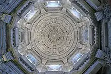 The mandir also consists of 234 ornately carved pillars, nine domes, and 20,000 murtis of swamis, devotees, and acharyas.[13] The mandir also features the Gajendra Pith at its base, a plinth paying tribute to the elephant for its importance in Hindu culture and India's history. It contains 148 life sized elephants in total weighing a total of 3000 tons.[14]