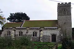 St Edmund's parish church is a little remote from the village. The church has been heavily restored in recent times as it was in a very poor state of repair. The church's tower was rebuilt in 1821.[5] Much of the restoration work has been carried out using old building materials from the original church buildings which dates from Norman times.[6]