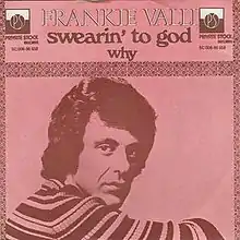 "Swearin' to God" is a song written by Bob Crewe and Denny Randell. It was recorded by Frankie Valli and released in May 1975 as a single from his album Closeup.[1][2][3][4] It is a love song whose lyrical hook is a more literal use of the expression "I swear to God" (i.e., "I mean this sincerely"):