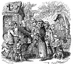 Swearing on the Horns and becoming Freemen of Highgate conferred several privileges, though the privileges were subject to several conditions and often turned out to be no privilege at all. The immediate reward was to kiss the prettiest woman in the pub; if no pretty women were to be found, the new initiate had to settle for less. If a Freeman in need of a rest was in Highgate, he could kick a pig out of a ditch and take its place. But if there were three pigs in the ditch, he could only chase away the middle one and sleep between the other two. If a Freeman found himself penniless in Highgate, he could have free drinks for himself and his friends, but if any money was found on him (or if it was found he had given it to his friends to hold) he had to buy a round of drinks for the house.[3]
