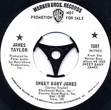 "Sweet Baby James" is a song written and recorded by James Taylor that serves as the opening and title track from his 1970 breakthrough album Sweet Baby James. It was released as the first single from the album but did not chart.[1][2] Nonetheless, it is one of his best-known and most popular tunes.[3] Taylor considers it his best song.[4][5]