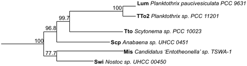 The structural variants of the swinholide biosynthesis gene clusters origins were elucidate through phylogenic studies.[1] A phylogenetic tree of trans-encoded AT proteins showed that all six biosynthesis gene clusters were similar and assembled their own group.[1] Scytophycin, luminaolide, and tolytoxin biosynthesis gene clusters were arranged together based on ketosynthase domains, and the misakinolide and swinholide biosynthesis gene clusters constituted their own category (Figure 5).[1]