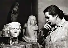 In 1959, Lefkovitz returned to her bookkeeping job in Montreal, painting in whatever spare time she had. By 1960, she had saved enough money to travel again, and headed to Italy; it was there that her focus shifted to sculpture. In the marble studios of Florence, she took an apprenticeship in carving, and in the city’s ceramic factories, she learned the art of terra cotta.[24] Working in the foundries, she rapidly mastered the technique of lost-wax casting.[3][11] In 1962, she was awarded the Porcellino Award as the best resident foreign artist.[3] She returned home later that year, fluent in Italian and accompanied by nine crates of her painting and sculpture. The Waddington Galleries in Montreal mounted a solo exhibit of her artwork. She used this homecoming to begin sculpting with Canadian wood.[14][3] She travelled again in 1963, in Greece and Rome, finally settling in Milan, where she had her first major Italian solo exhibit at the Galleria Montenapoleone. The show won critical acclaim, and she was lauded for her interpretation of the Italian Renaissance tradition in both her painting and sculpture.[3][25]