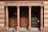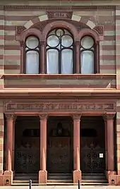 The Synagoge Zürich Löwenstrasse is the oldest and largest synagogue in the Swiss municipality of Zürich. In 1884 built in Moorish style, the oldest Synagogue of Zürich also houses the prayer and school house of Israelitische Cultusgemeinde Zürich (ICZ) which was founded in 1862. ICZ is a unified Jewish community having about 2,500 members, and thus the largest Jewish community in Switzerland, which since 2007 in the Canton of Zürich is recognized as a denomination, i.e. ICZ has the same legal state as the Christian denomiations. In the synagogue, the community celebrates the daily Minyan and Shabbat and holiday services.[1] The synagogue is a cultural heritage of national importance in Switzerland.